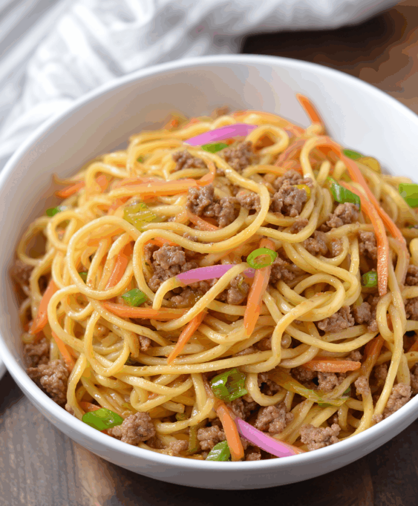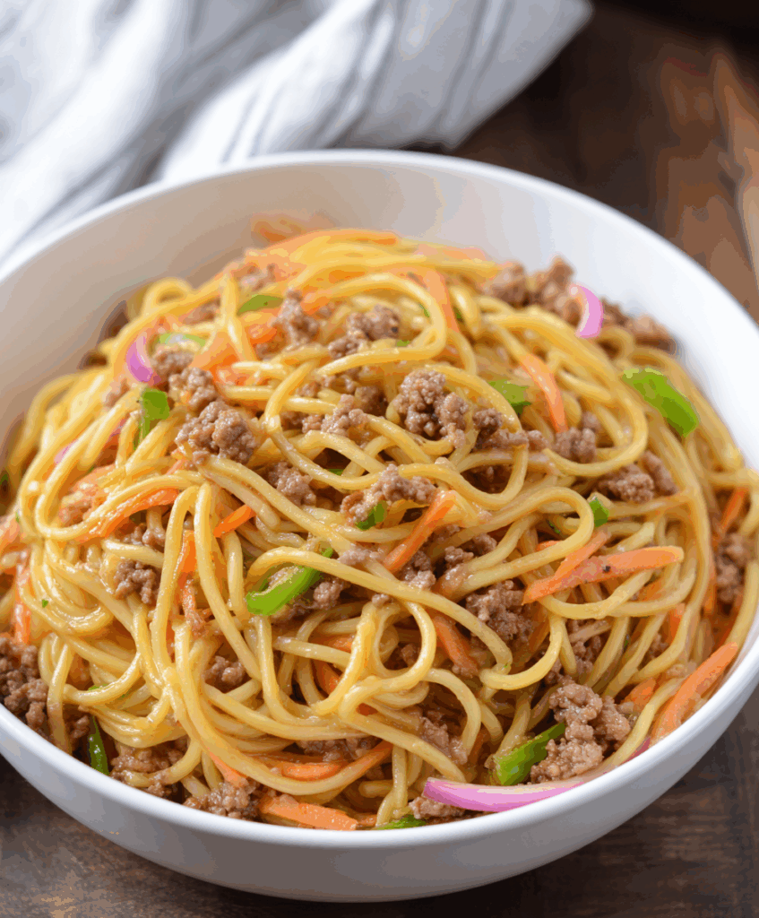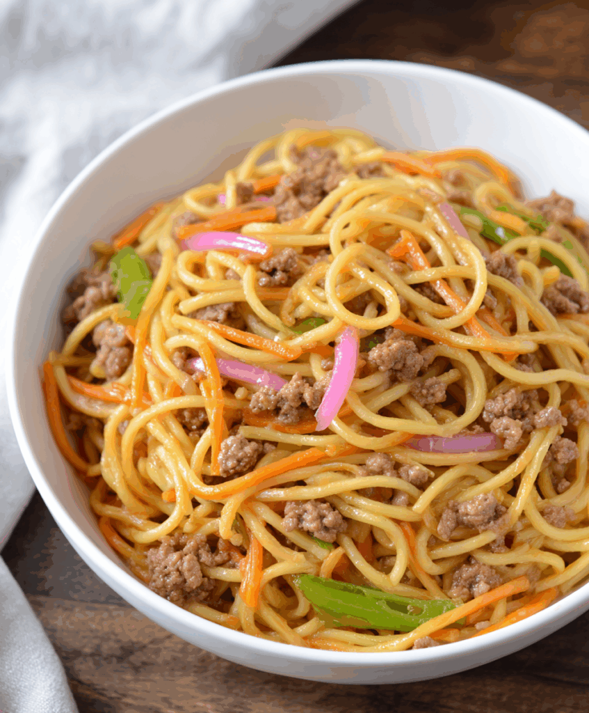 A fast and satisfying meal, this Ground Beef Lo Mein recipe fuses savory minced beef with vibrant vegetables and soft noodles, all enveloped in a rich, umami-packed sauce. Ideal for busy evenings, it delivers hearty flavors in under 30 minutes.