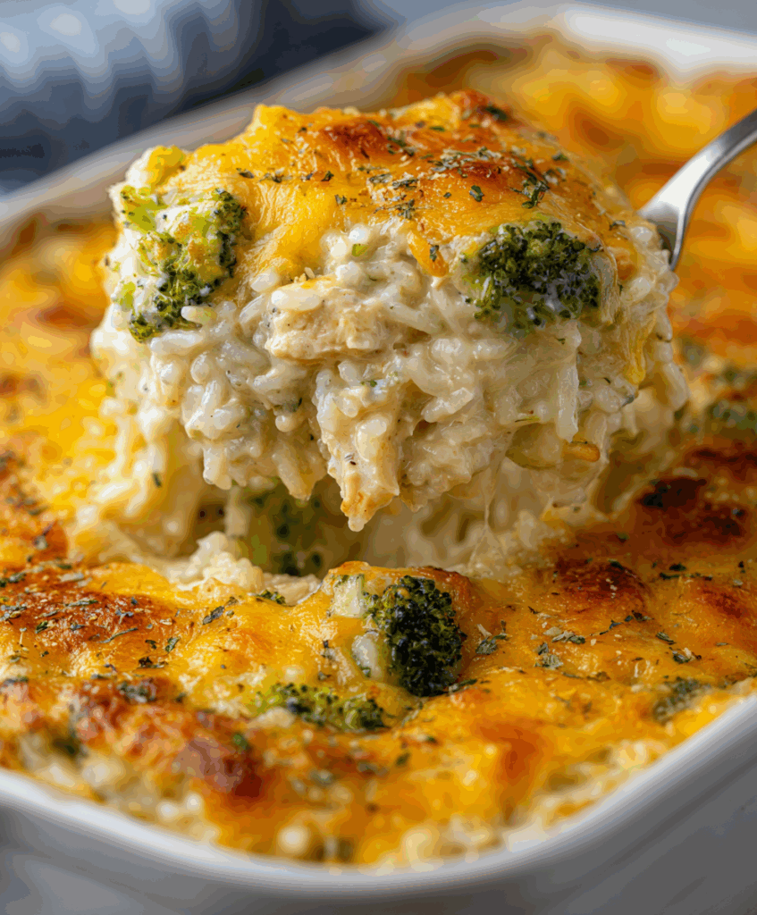 Creamy casseroles deserve a place in every kitchen, especially the kind that slip into the oven and emerge hot, bubbly, and golden. This one layers simple comforts—savory chicken, soft rice, and bright green florets—with a quick pantry sauce that bakes into a luscious, spoonable hug. It’s family-friendly, fridge-friendly, and potluck-ready, the sort of crowd-pleaser that disappears from the dish before the plates cool.