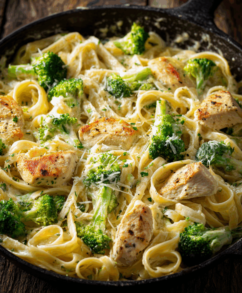 This is the kind of meal that’s perfect for busy days: assemble, walk away, and come back to a pot full of creamy Alfredo goodness. Because the pasta is cooked separately, you never have to worry about mushy noodles, and the broccoli stays vibrant instead of overcooked. Serve it with extra Parmesan and everyone will think you worked a lot harder than you did.