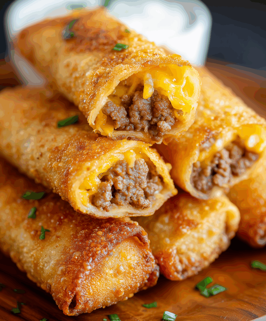 Golden, cheesy, and bursting with Tex-Mex flavor, these Crispy Beef Nacho Egg Rolls take everything you love about loaded nachos and wrap it in a crunchy, handheld package.