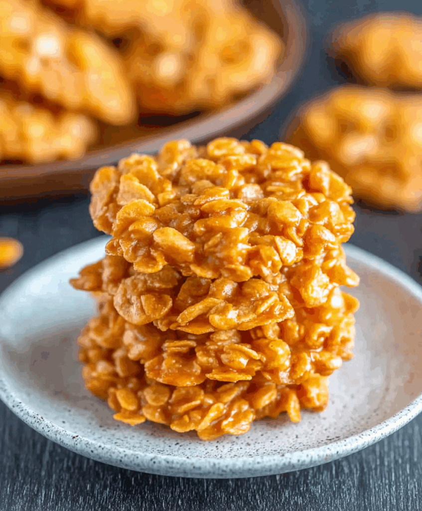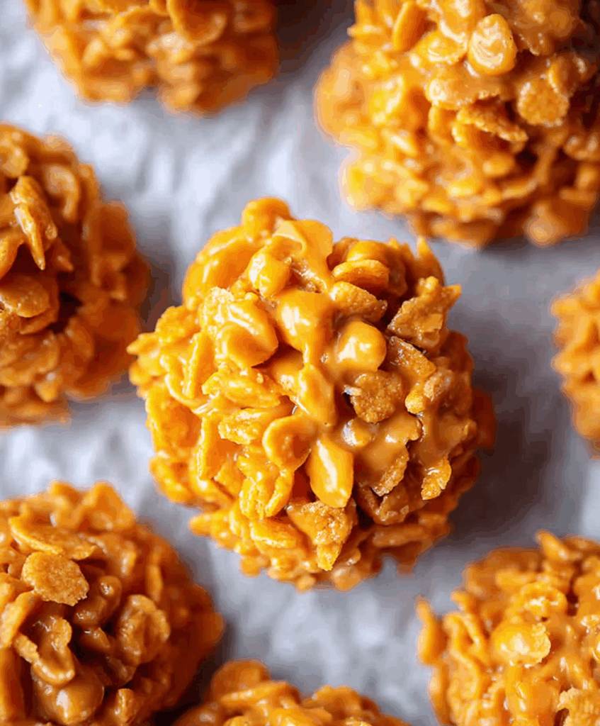 Cornflake cereal – Provides the signature crunch and craggy texture. The flakes stay crisp around the edges while lightly coated in the glossy peanut mixture.