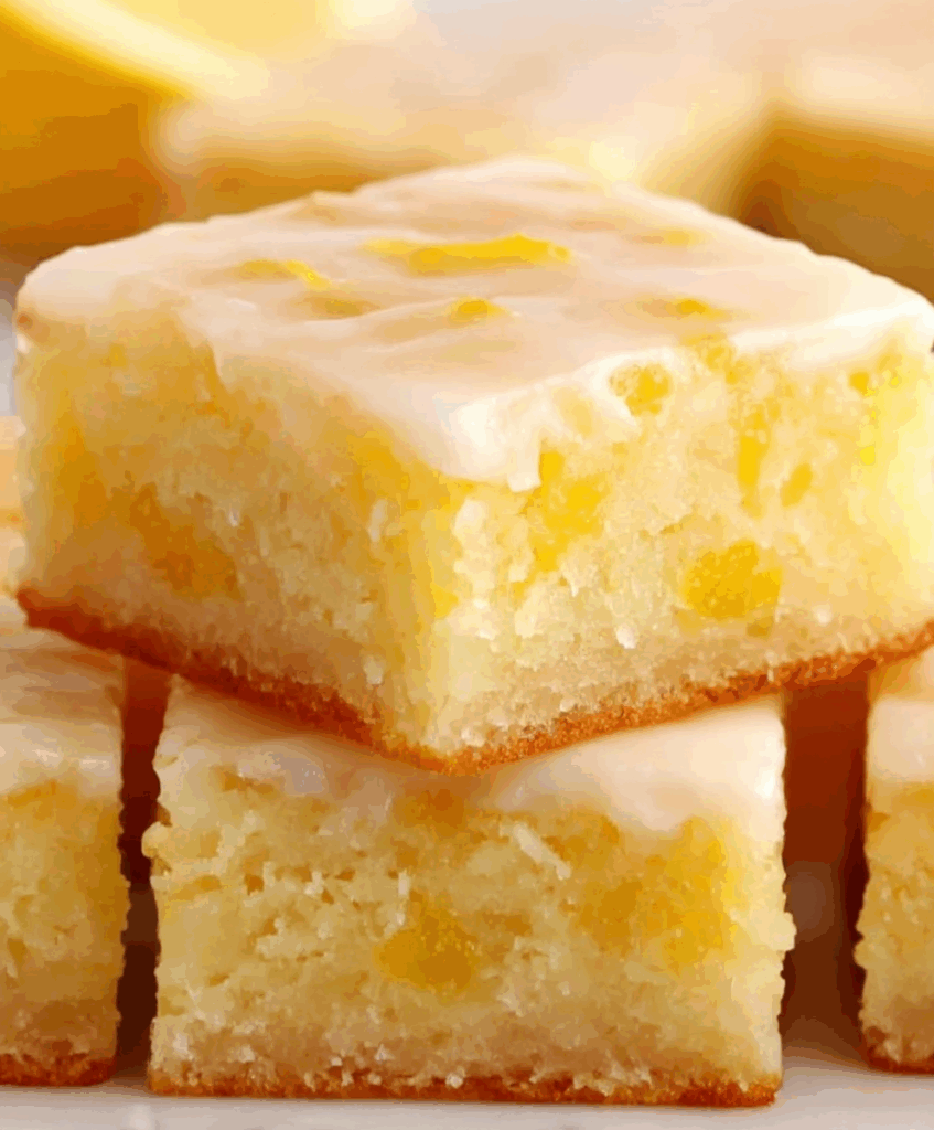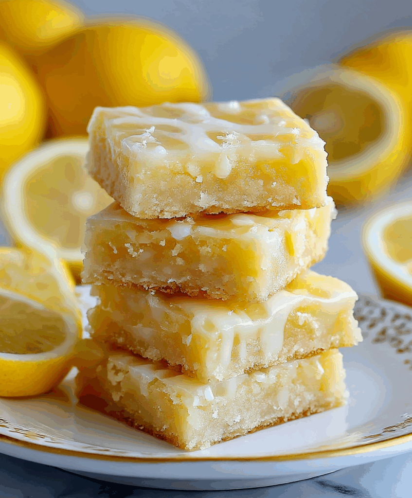 Glazed Lemon Blondie Bars deliver chewy, buttery squares packed with bright citrus flavor and finished with a glossy, tangy lemon glaze.