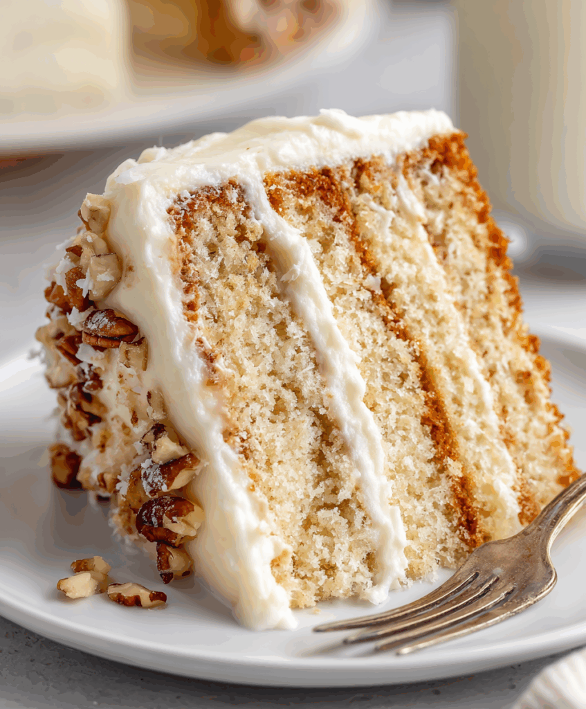 This cake shines on its own, but a few simple touches turn it into a truly special dessert course. Serve each slice with a small dollop of lightly sweetened whipped cream for an extra cloud of richness without overwhelming the coconut and pecan flavors.