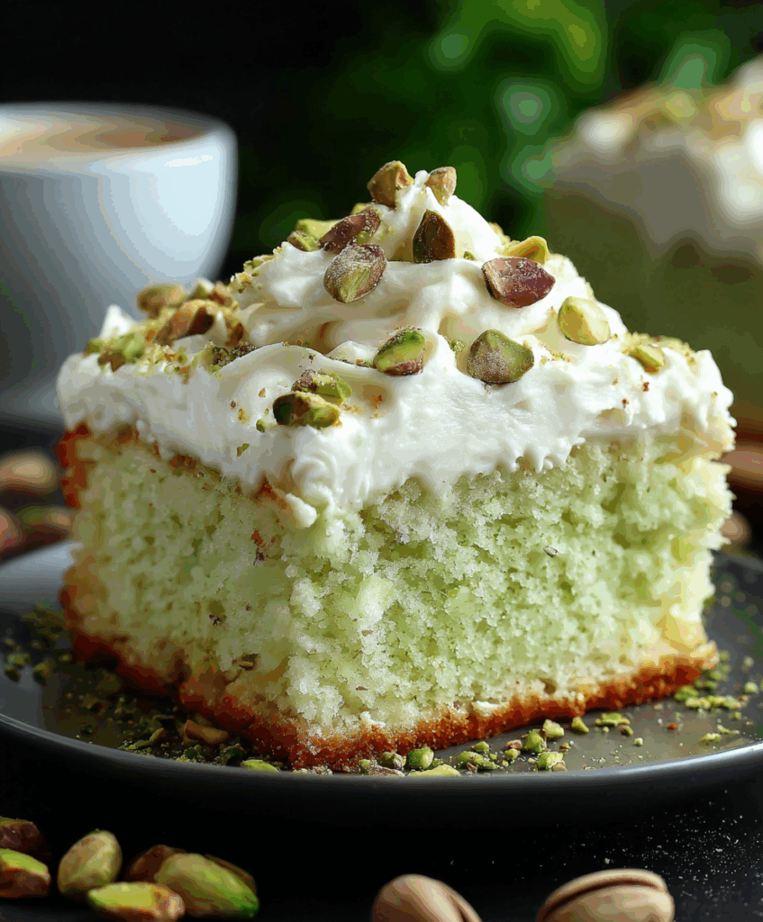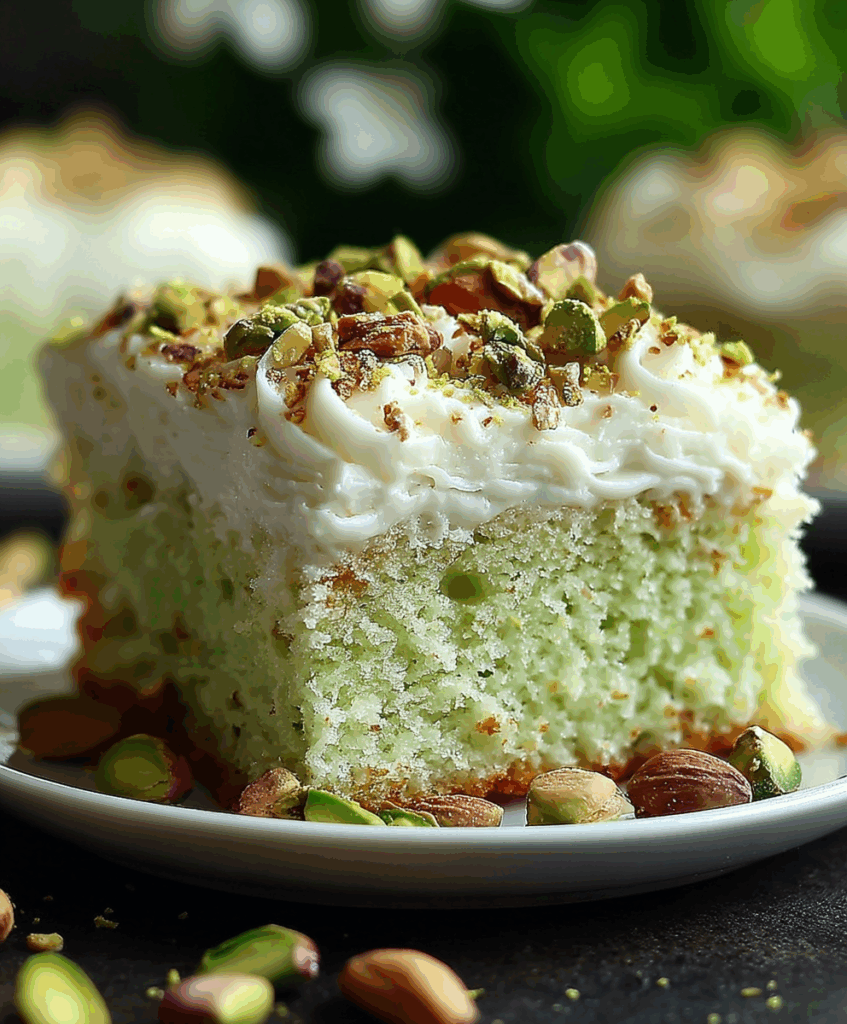 This classic sheet cake combines the bright, fruity flavor of crushed pineapple with the creamy richness of pistachio pudding, all baked into a soft, golden base. Finished with a cloud of whipped topping and optional garnishes, it’s a retro favorite perfect for gatherings, holidays, or casual desserts that impress with minimal effort.