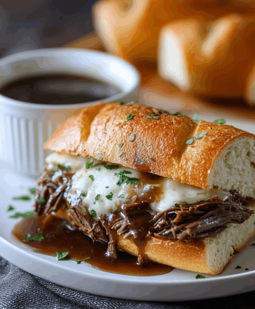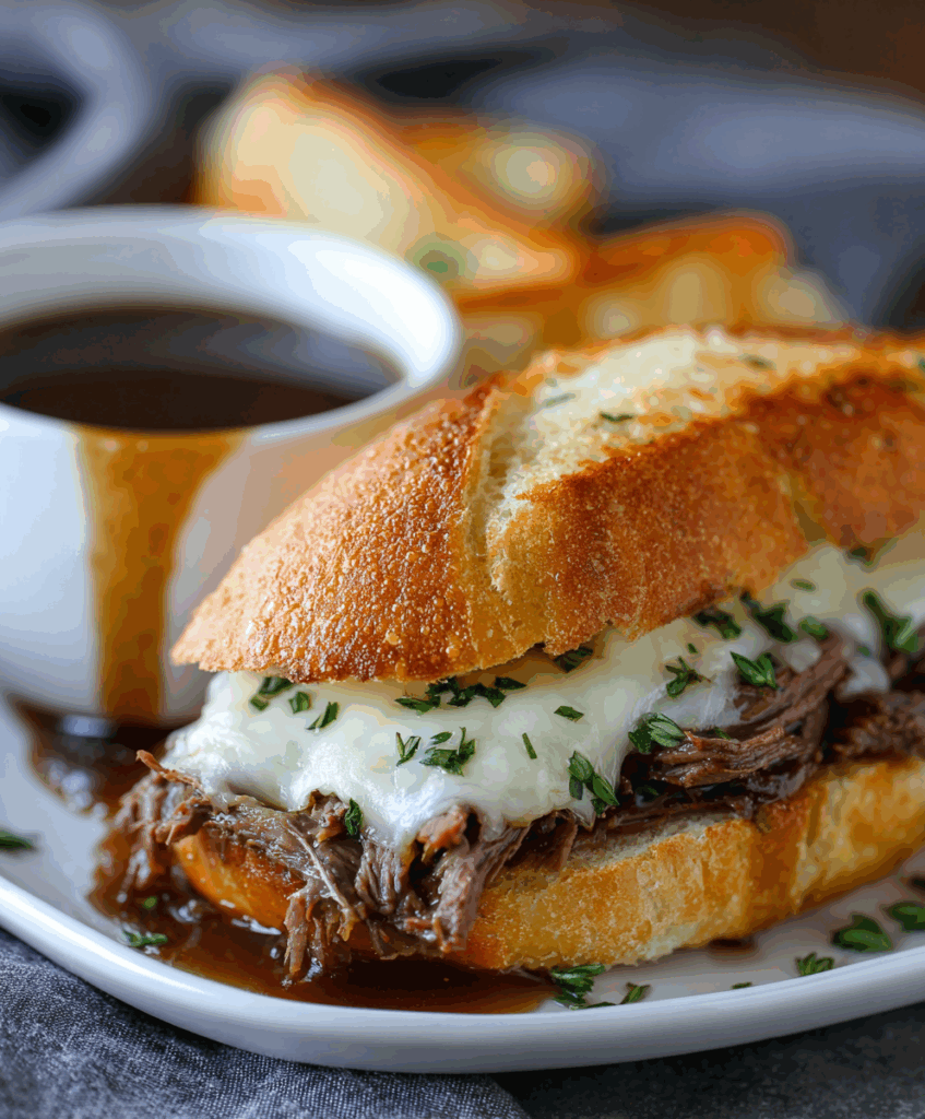 Warm, juicy, and irresistibly savory, this Slow Cooked French Dip brings the flavors of a diner classic right into your home — simple ingredients, slow-simmered perfection, and that satisfying moment when you dunk your sandwich into rich, homemade au jus.