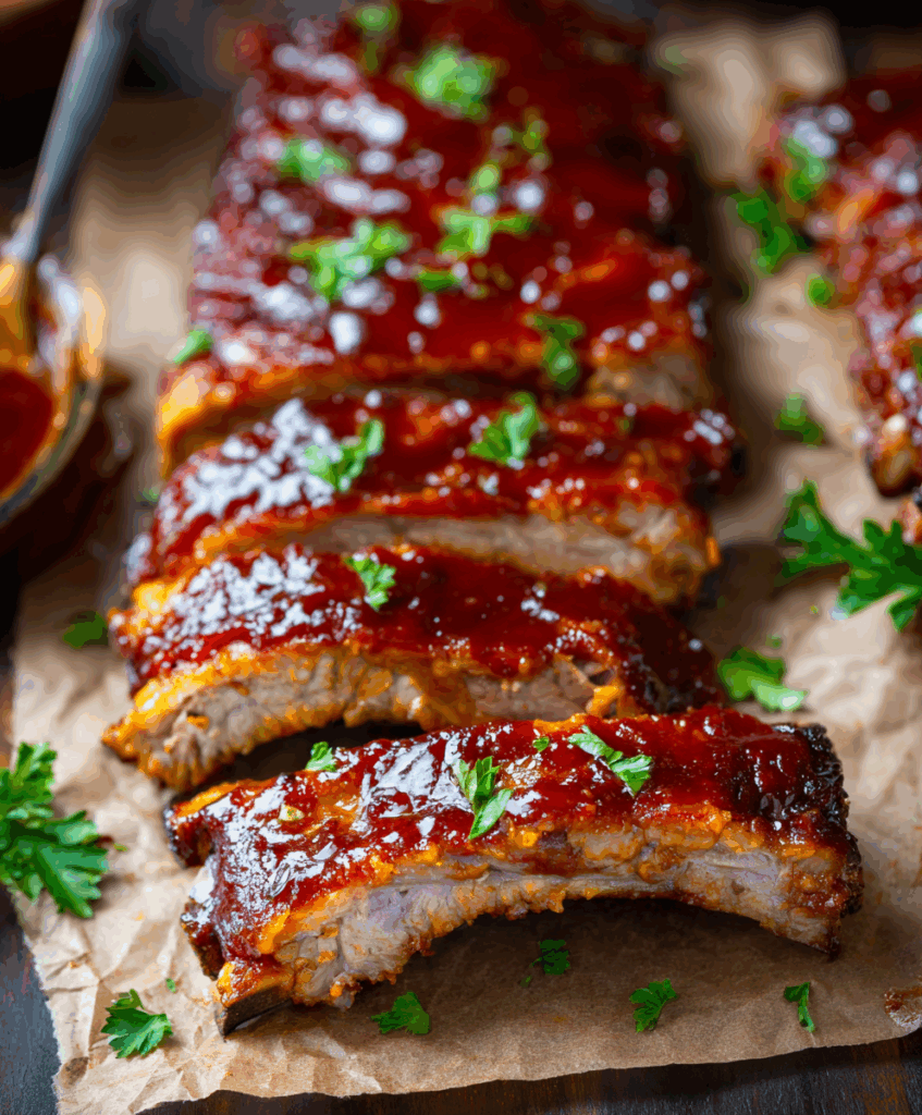 STEP 7: Let the ribs rest for a few minutes, then slice between the bones. Serve them hot with more BBQ sauce on the side and your favorite comforting side dishes.