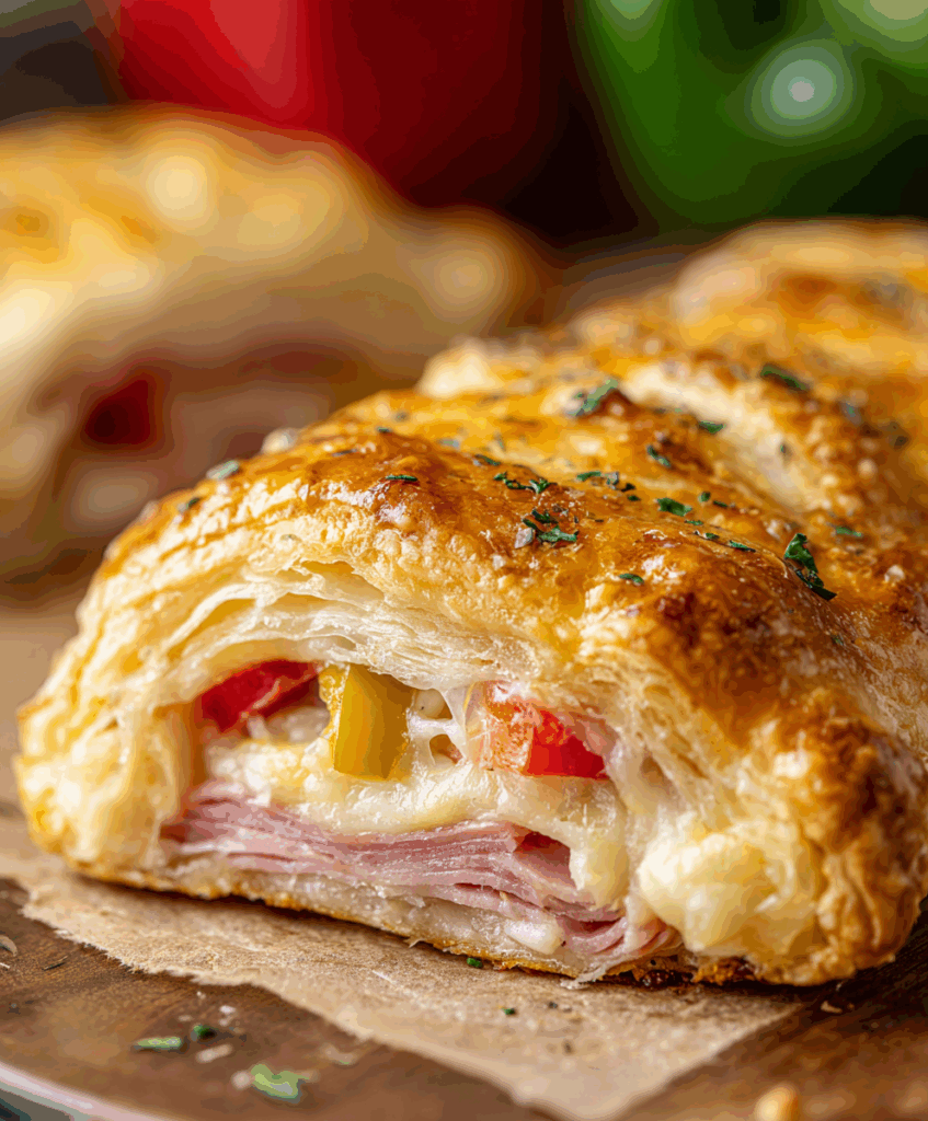 Yes, puff pastry works wonderfully if you prefer an even flakier, more buttery crust. Just roll out the pastry into a circle or rectangle, cut into triangles, and assemble as you would with crescent dough. Baking time may be slightly shorter — check after about 18 minutes. The result will be beautifully crisp and extra rich.