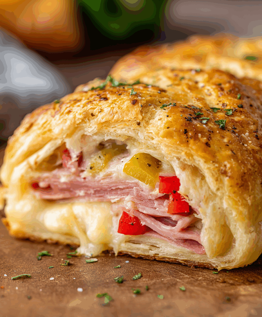 Place the baking sheet in the oven and bake for 20–25 minutes, or until the crescent dough is puffed and golden brown. The cheese should be melted and bubbly inside. You’ll know it’s ready when the top is deeply golden and your kitchen smells like an Italian deli.