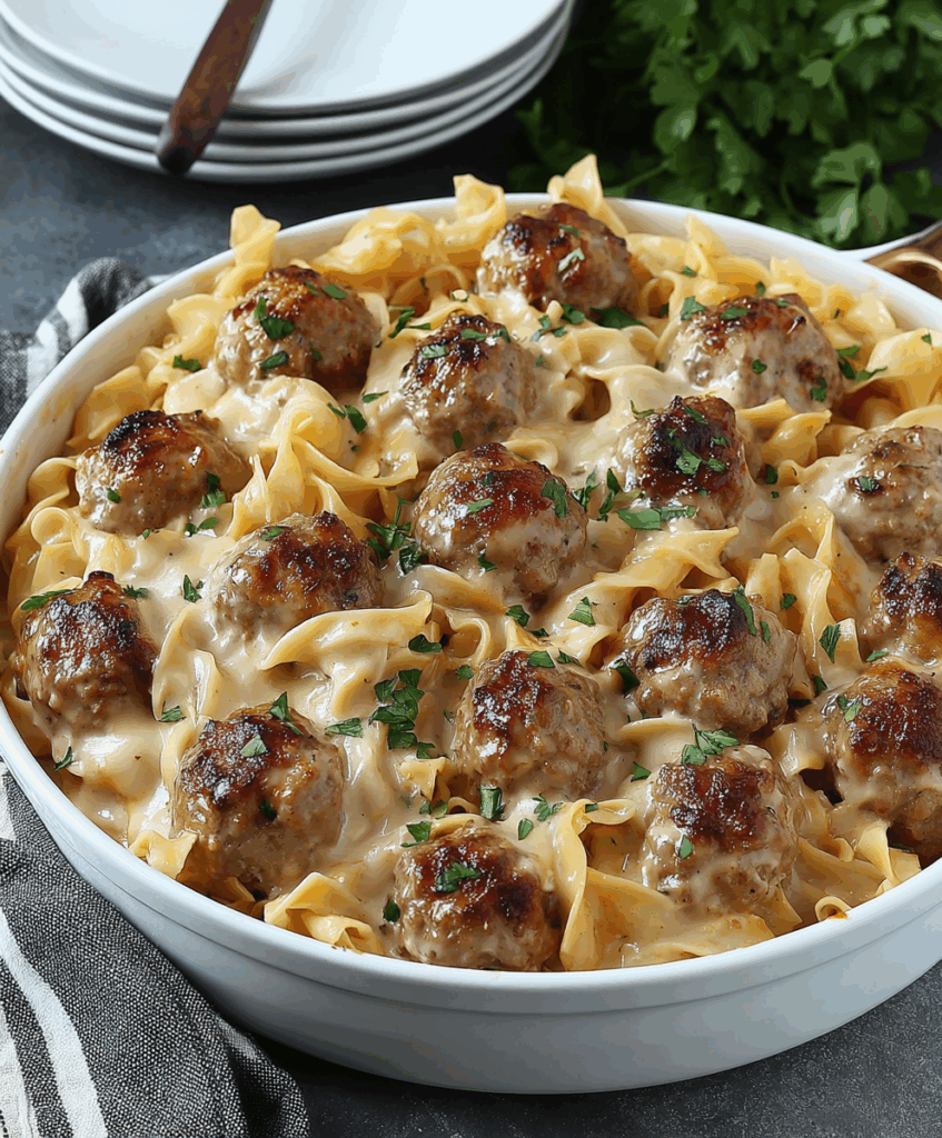 Yes — if you prefer, homemade Swedish-style meatballs work beautifully here. Just make sure they’re fully cooked before adding them to the casserole. You can also use regular beef or turkey meatballs for a lighter twist.