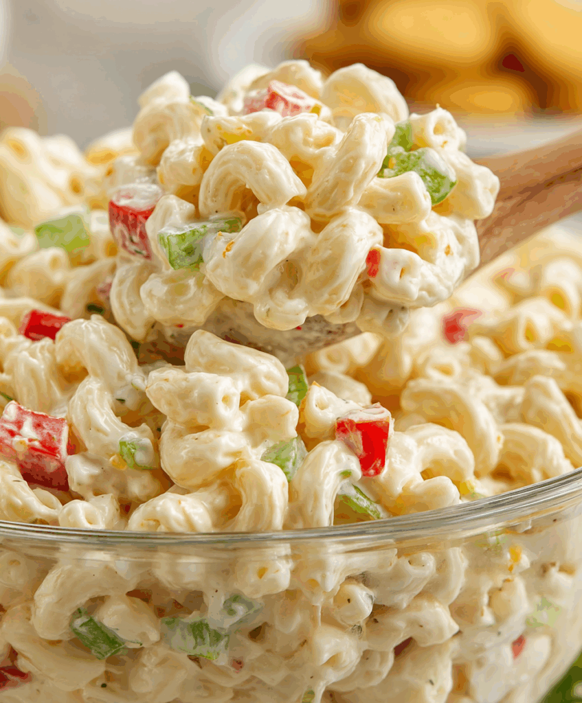 Whether you serve it alongside fried chicken, barbecue, or a holiday ham, this pasta salad brings familiar comfort and a touch of nostalgia to any table.