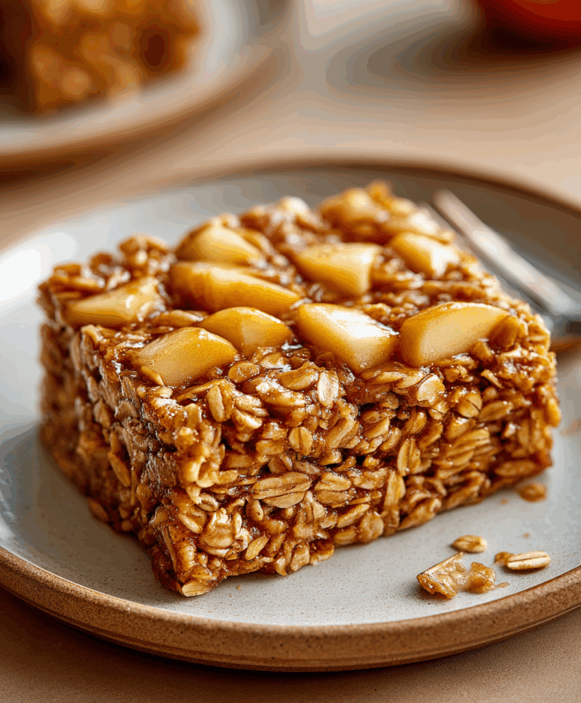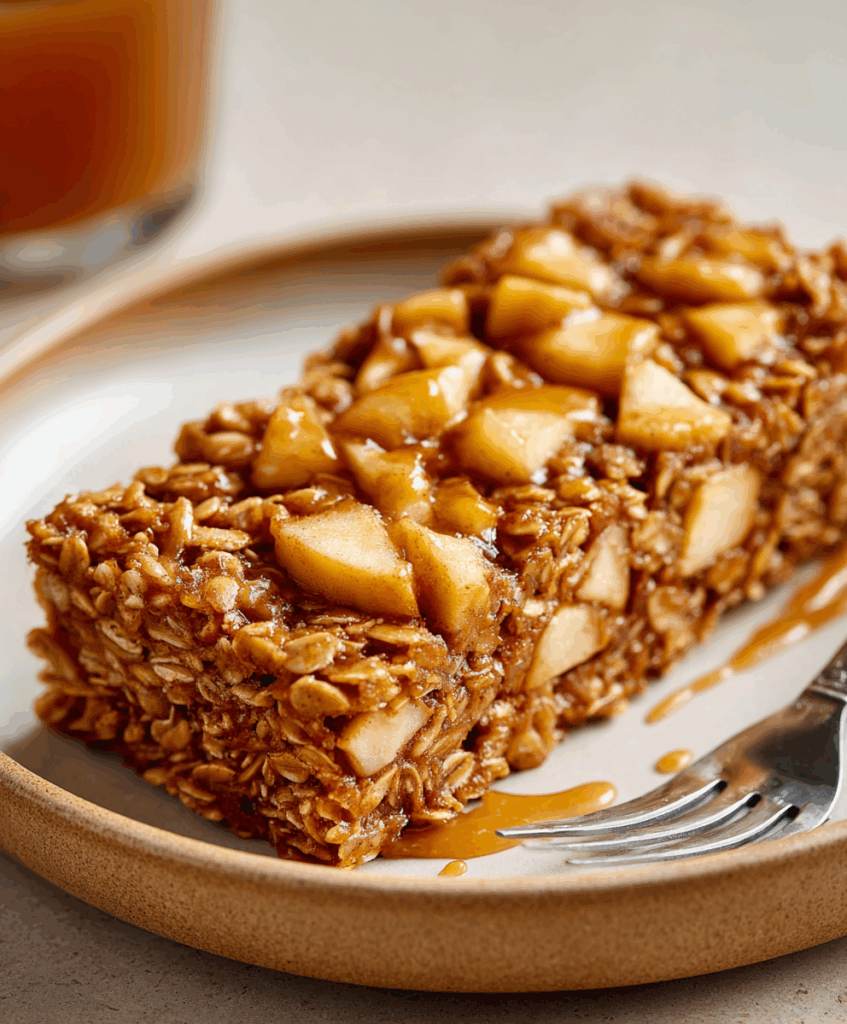 If you love the idea of oatmeal but wish it felt a little more special, this baked version is for you. Instead of standing at the stove, you stir everything together, bake it once, and scoop out warm, lightly sweet, apple-studded squares all week long.