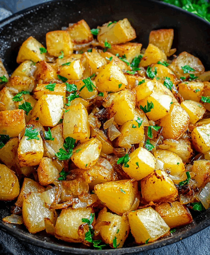 Crispy Potatoes with Sweet Onions are a simple, comforting skillet side dish with golden edges, soft centers, and rich caramelized flavor.