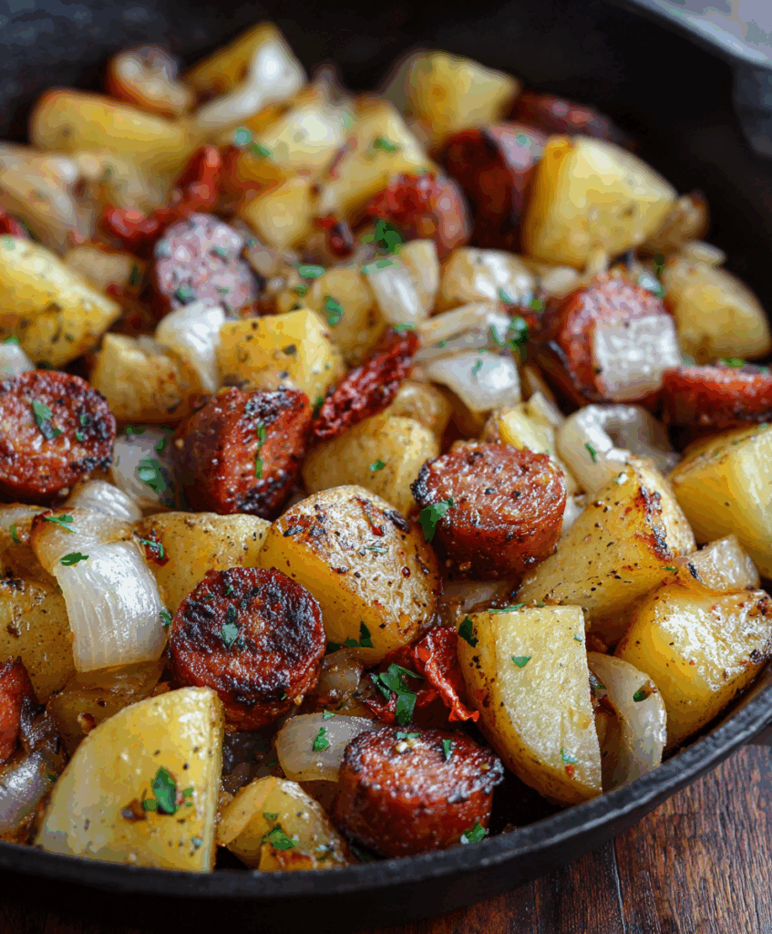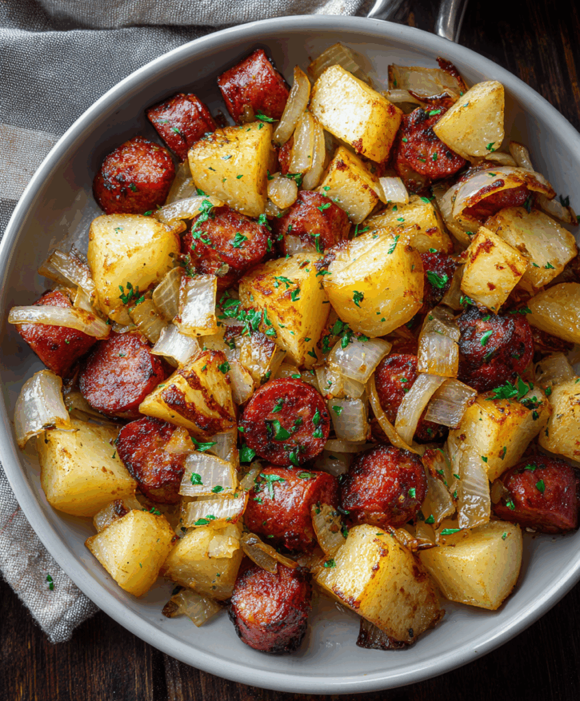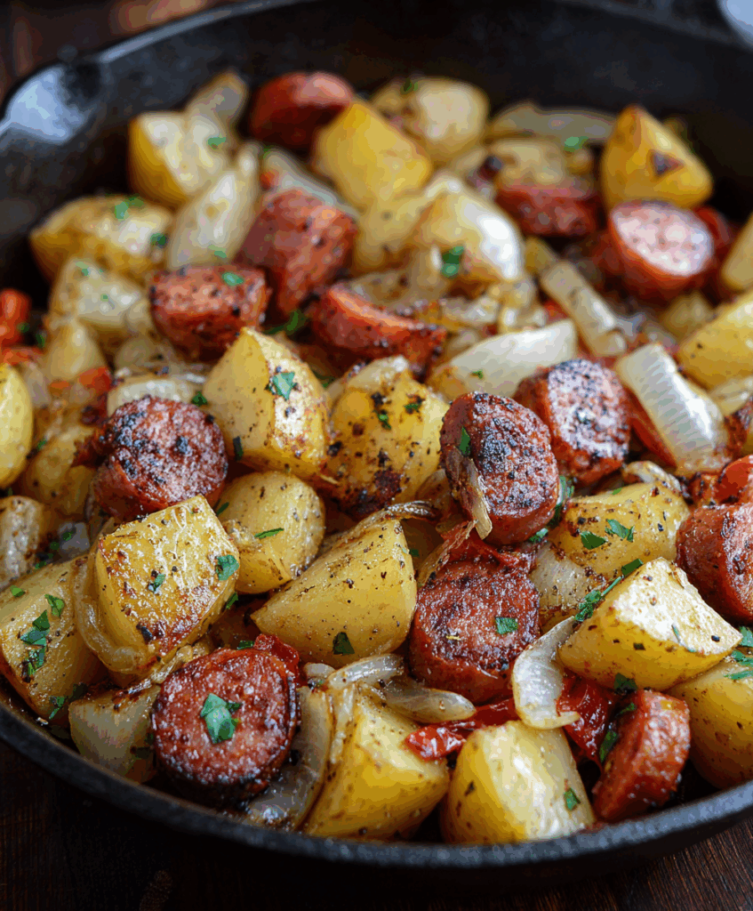 There’s something really comforting about this kind of dish: a big skillet, simple ingredients, and those smells that instantly make the kitchen feel like home. If you grew up with fried potatoes and sausage, this will taste like pure nostalgia. If you didn’t, you’re about to discover why so many families love it.