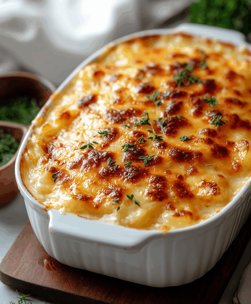 For a heartier version, stir in cooked diced ham, browned breakfast sausage, or shredded rotisserie chicken before baking. It turns the dish from a side into a full meal while keeping that same cheesy potato comfort.