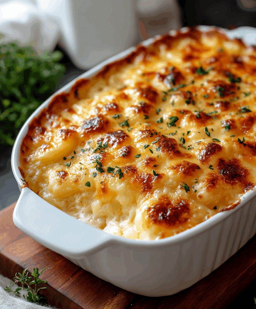 Remove the dish from the oven and let it rest for 5–10 minutes before serving. This helps the casserole set up slightly so it scoops neatly while still staying creamy inside. Serve warm and watch it disappear.