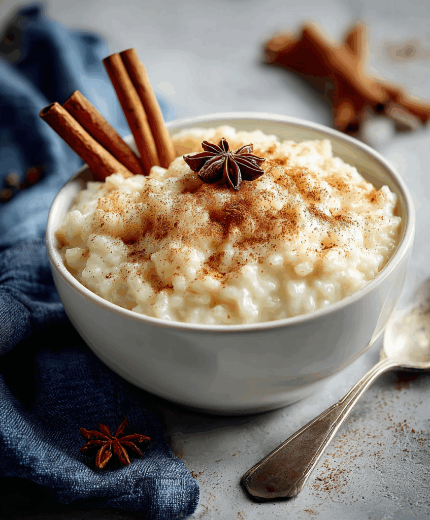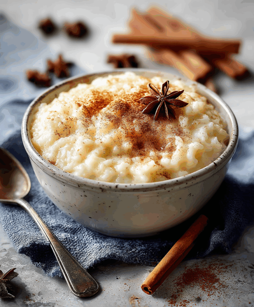 For a cozy evening, pair warm rice pudding with hot tea, a spiced latte, or freshly brewed coffee. A sprinkle of extra cinnamon or nutmeg on top ties everything together with a warm, fragrant finish.