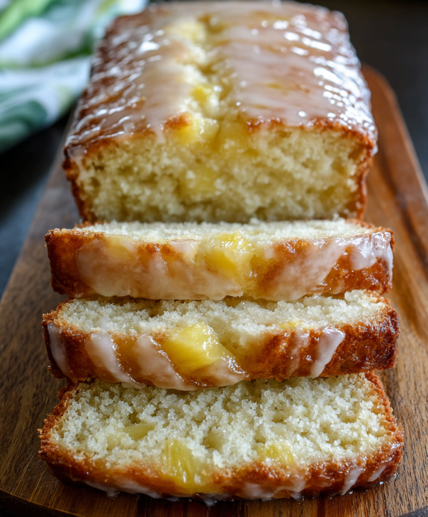Glazed Pineapple Loaf Bread is a tender, tropical quick bread packed with crushed pineapple, warm vanilla, and a sweet finish that tastes like sunshine.