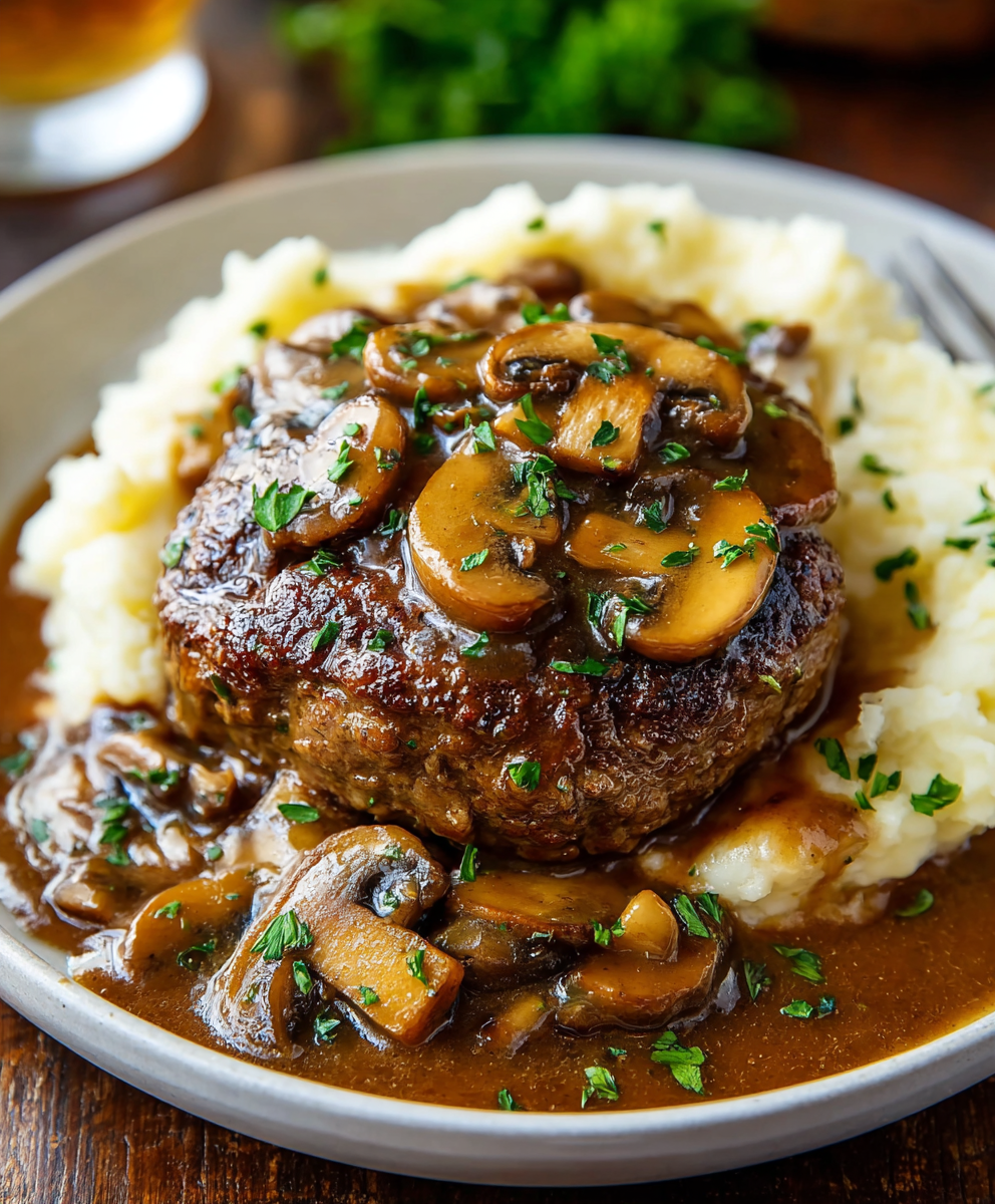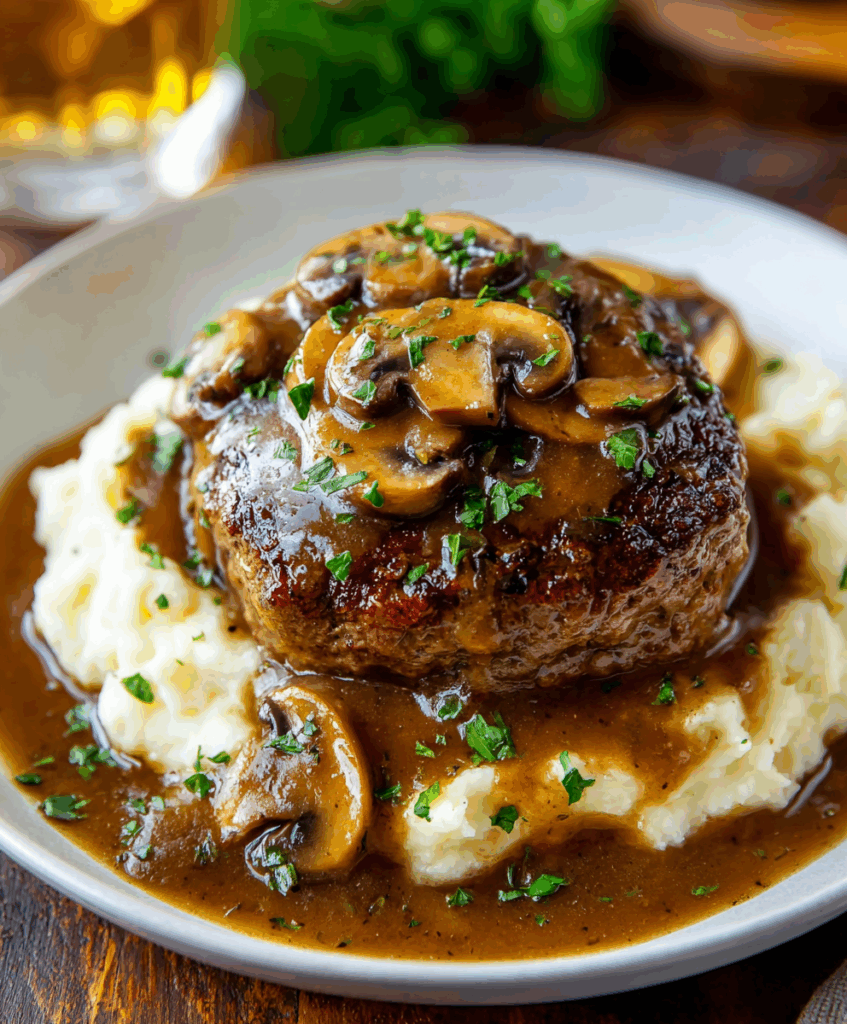 Mushroom Gravy Salisbury Steaks are tender beef patties simmered in a rich mushroom gravy, perfect for a cozy, home-style dinner any night of the week.